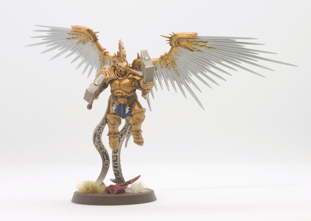 Si je devais retenir un mot de cette unité, c'est la persévérance (et beaucoup d'insultes mais je préfère ne pas en parler). Je les ai commencé en même temps que le Chevalier-Azyros, mais l'étape du parchemin m'a stoppé net et j'ai dû faire une pause de quelques semaines avant de retrouver l'envie de les reprendre. Déjà que c'est galère de peindre les parchemins, mais avec les ailes ultra fragile c'est un défi ! Moi qui voulais me faire une seconde unité pour rigoler, j'ai perdu une partie de mon sens de l'humour ...